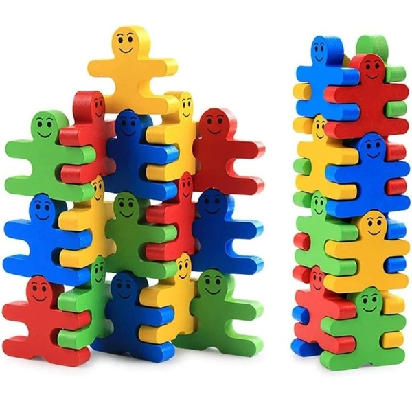 Wooden Balancing and Stacking Human Shape Puzzle Blocks Toy for Kids - 16 Pcs